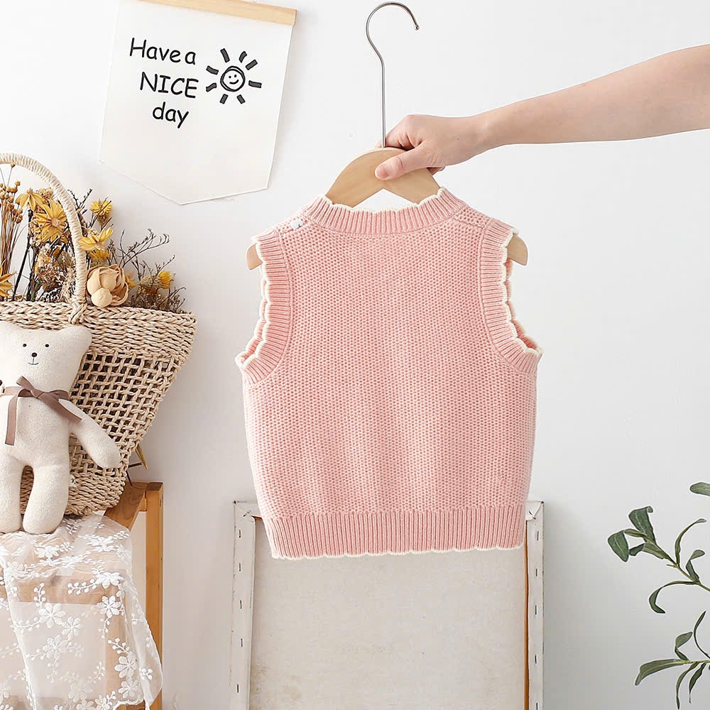 Áo gile len mềm mịn họa tiết thỏ 3D cho bé gái hàng Quảng Châu cao cấp