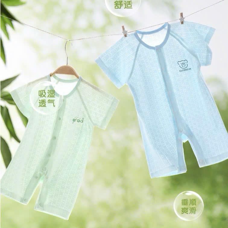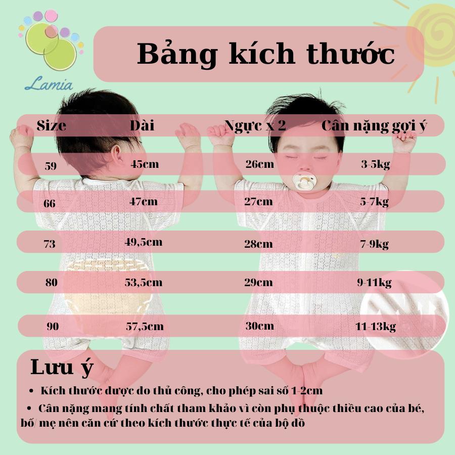 Bộ đồ liền thân cộc tay cho bé sơ sinh mặc mùa hè chất vải cotton sợi tre mỏng mát, có lỗ thông hơi cho bé trai bé gái mặc hè