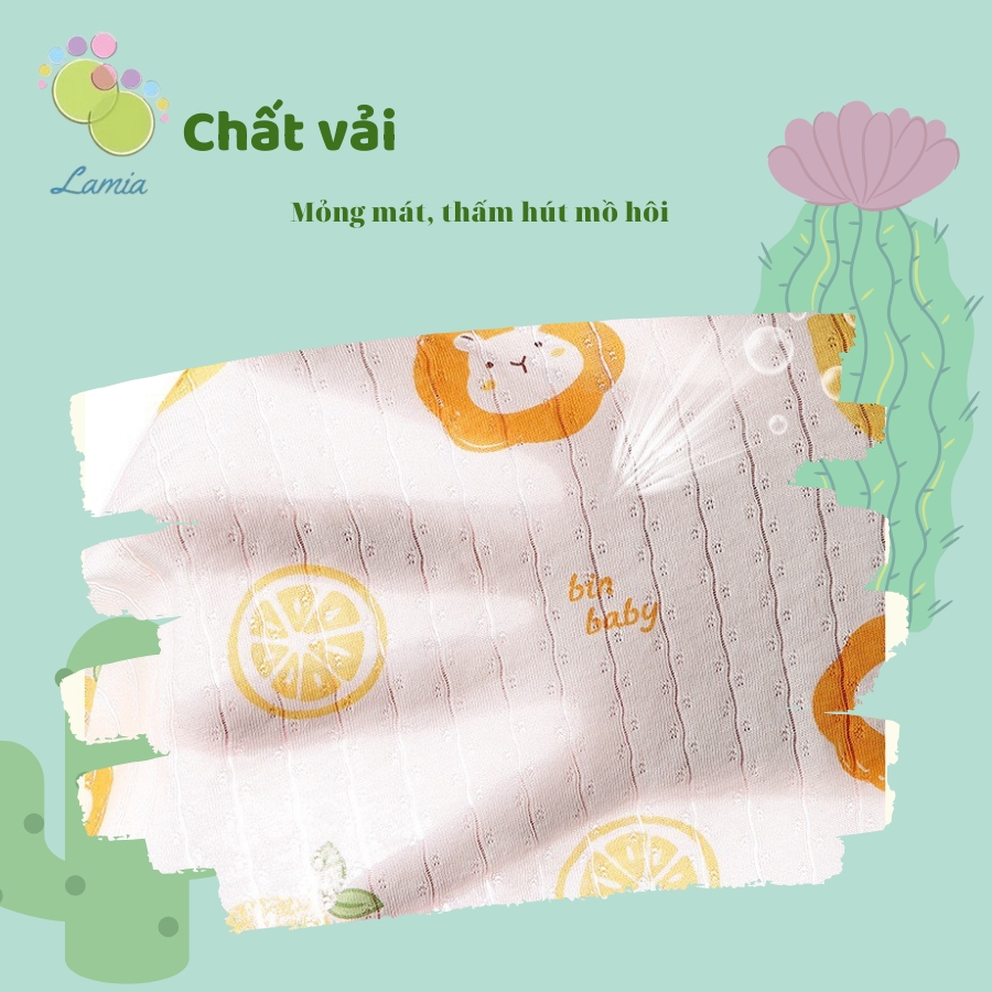 - Chất liệu: Chất liệu vải cotton mềm mại, thấm hút mồ hôi rất tốt, không gây kích ứng, không bị xù lông, đảm bảo an toàn tuyệt đối với làn da nhạy cảm của bé.
