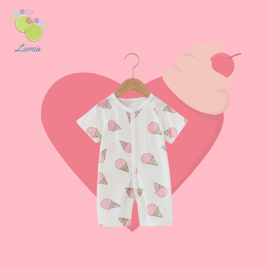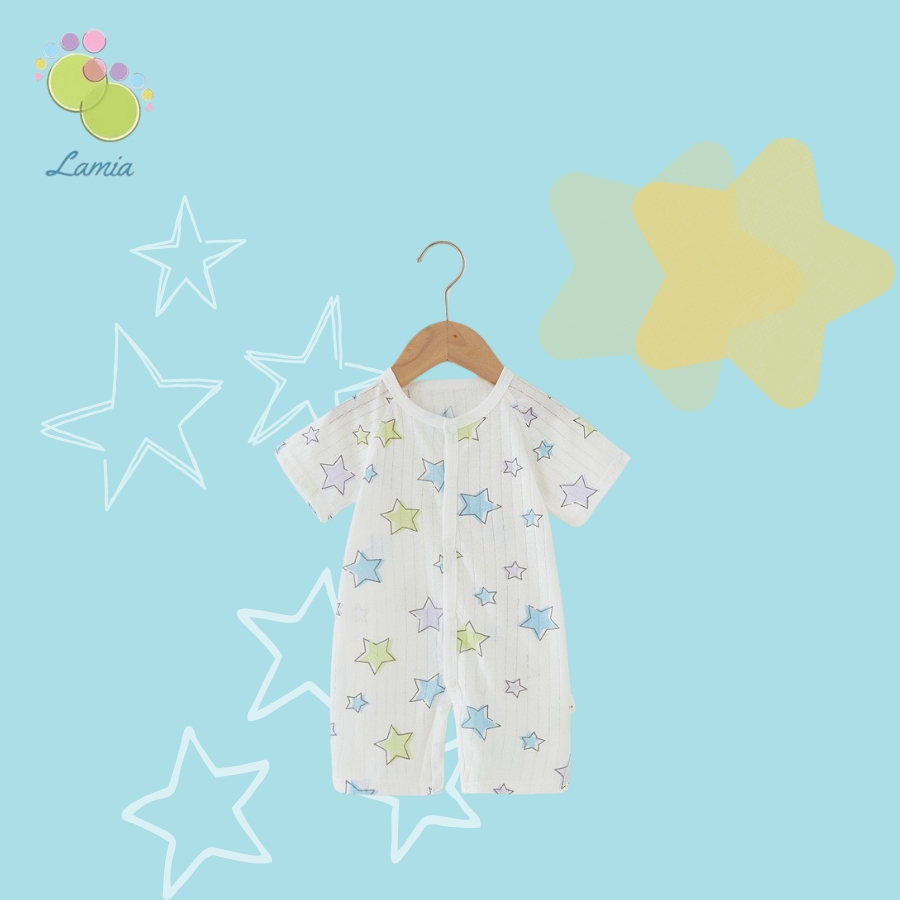 Bộ đồ liền thân cộc tay cho bé sơ sinh mặc mùa hè chất vải cotton mỏng mát, có lỗ thông hơi cho bé trai bé gái mặc hè
